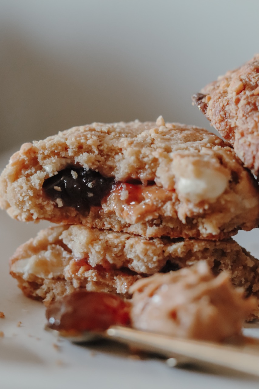 Peanut butter and jam in a cookie.